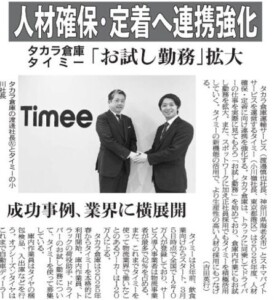 株式会社タイミーと人材採用の業務連携記事が掲載されました。